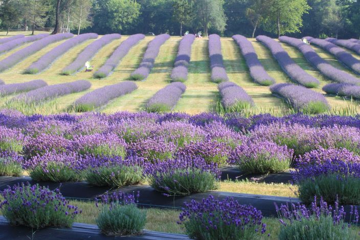 Indigo Lavender Farms was founded in 2015 by owners Trish and Greg Dennis. In its first three years, the farm grew from 4,000 lavender plants to 14,000 plants on 23 acres of land. The farm has become one of the most popular agritourism destinations in Michigan, drawing hundreds of visitors a day during the summer months. In addition to walking among the lavender fields, guests can picnic and buy plants, visit the greenhouse, and purchase broad array of lavender products while at the property. Recently, the farm added honeybee hives onsite, producing 65 gallons of honey a season.